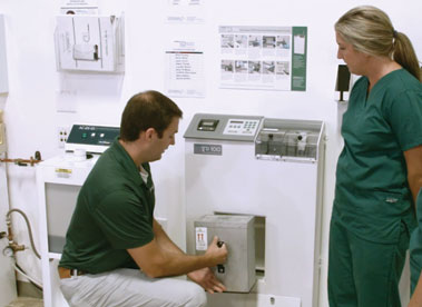 A major concern to employee safety is exposure to high-level disinfectants. In the TD 100, this exposure is eliminated. The high-level disinfectant container is opened inside the TD 100 under negative airflow that is filtered before release into the reprocessing suite. The container of TD-5 or TD-8, is completely rinsed free of any chemical residue and, at the conclusion of the disinfection and rinse cycle, can be removed and thrown away as general waste with no special disposal requirement. This is very different from the requirements by some automated devices that incorporate reuse chemistry in their designs. The healthcare end user is required to remove the bottle from the device, remove the fluid system, and then add a neutralization formula to the container prior to disposal. Furthermore, the new gallon of high-level disinfectant is placed beside the old bottle and the fluid system is placed from the expired high-level disinfectant bottle into the new high-level disinfectant bottle . This presents two elements of risk. The first risk is exposure of the healthcare end user to the disinfectant. This risk will vary depending on the type of disinfectant and the temperature of the disinfectant. If the disinfectant is an aldehyde-based chemical, the neutralization agent can cause significant foaming and result in the bottle overflowing, an added safety concern. The second risk is dilution of the fresh disinfectant by the expired disinfectant. This is a risk, regardless of how much or how little is allowed to transfer from the fluid system. Reduced concentration is directly linked to dilution and bioburden challenge. You are starting the entire process at a disadvantage in this scenario.